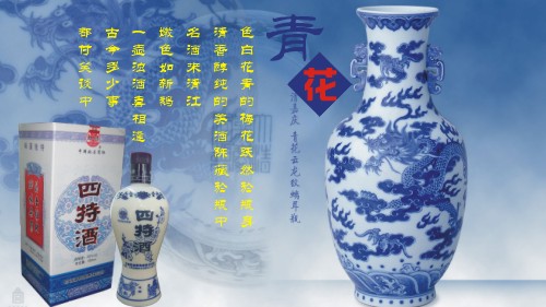 青花四特酒: 色白花青的梅花跃然於于瓶身